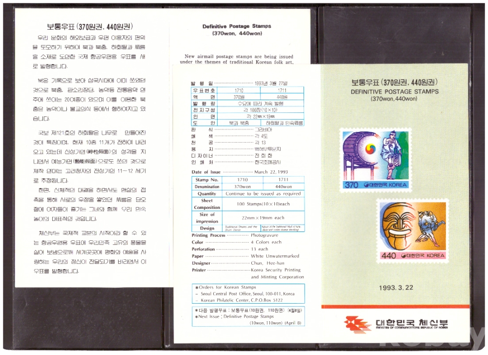 (안내카드) 1993.3.22 보통우표(370원권, 440원권) (접지않음)
