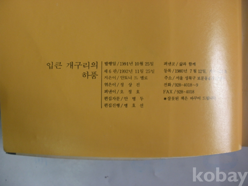 입큰 개구리의 하품 (1992년, 안토니 드 멜로 저, 삶과 함께)