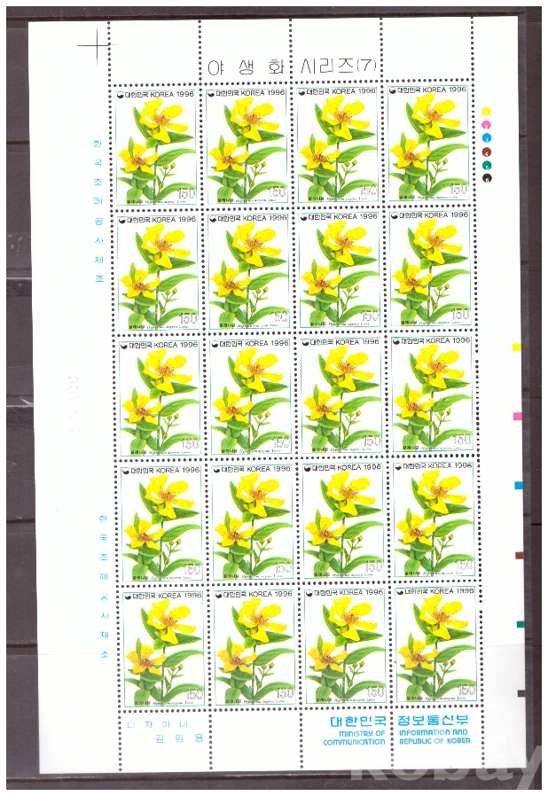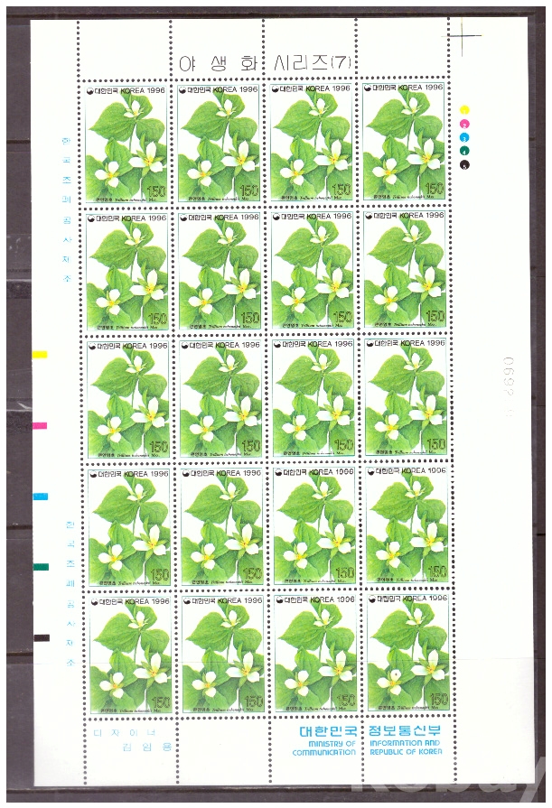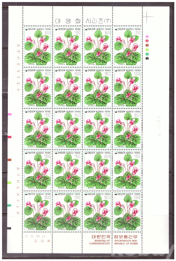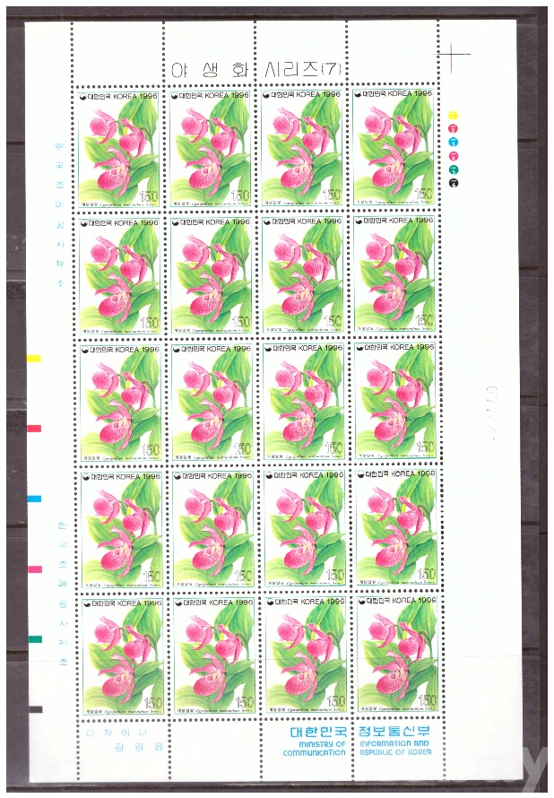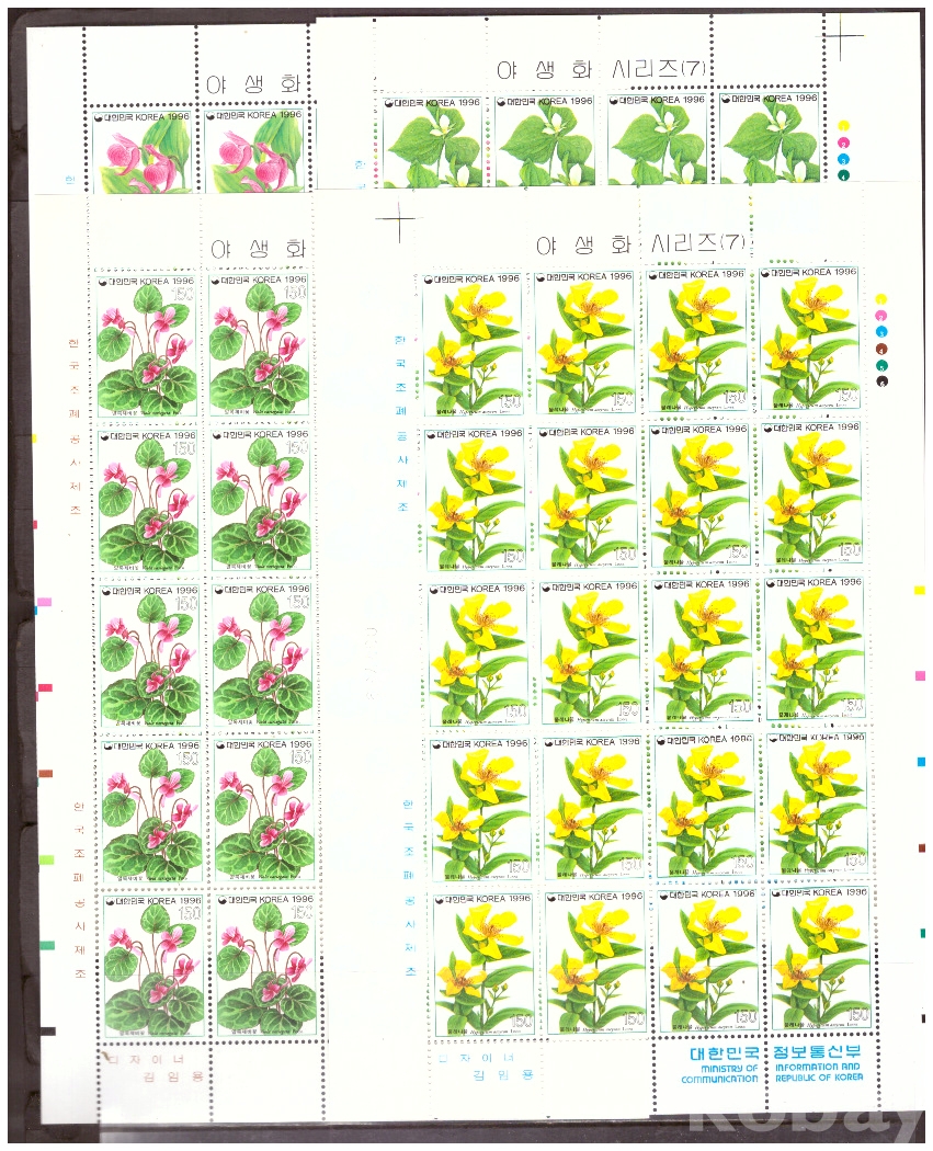 (한국전지) 1996.4.22 야생화시리즈(일곱번째묶음) 4완 sheet of 20 MNH