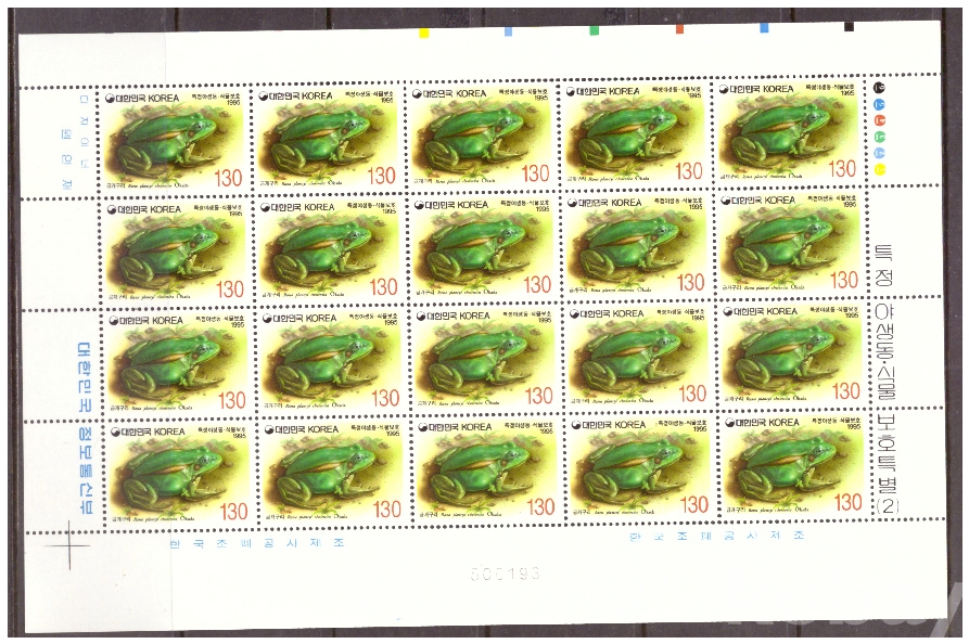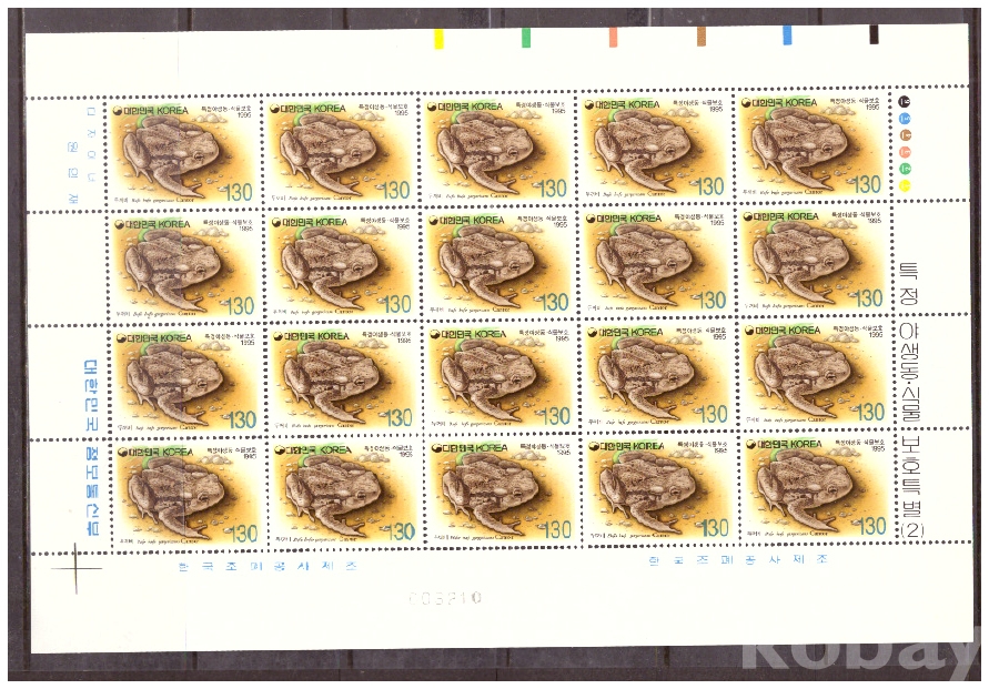 (한국전지) 1995.1.23 특정야생동.식물보호 2완 sheet of 20 MNH