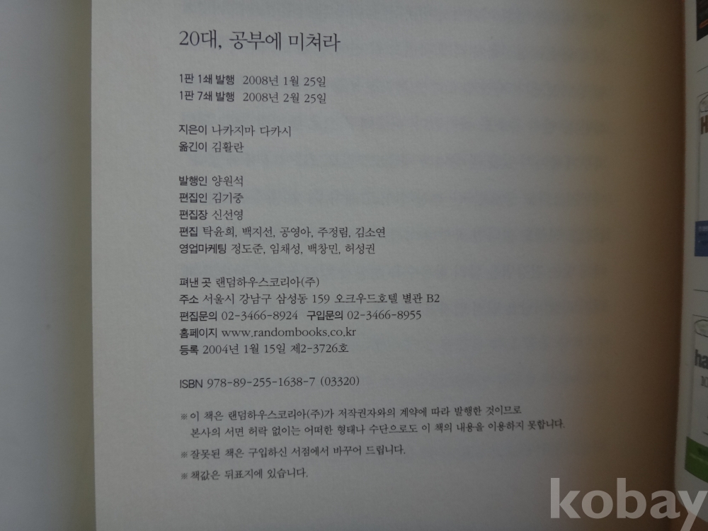 20대, 공부에 미쳐라 (2008년, 나카지마 다카시 저, 김활란 역, 램덤하우스코리아)