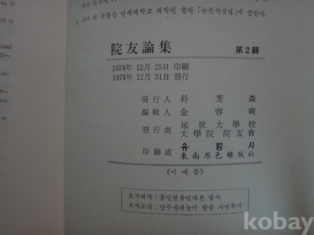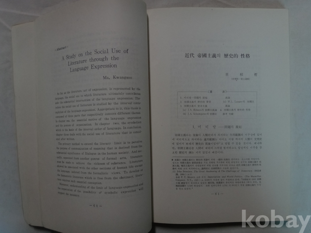 연세대학교 대학원 - 원우론집 (근대 제국주의의 역사적 성격, 1974년)
