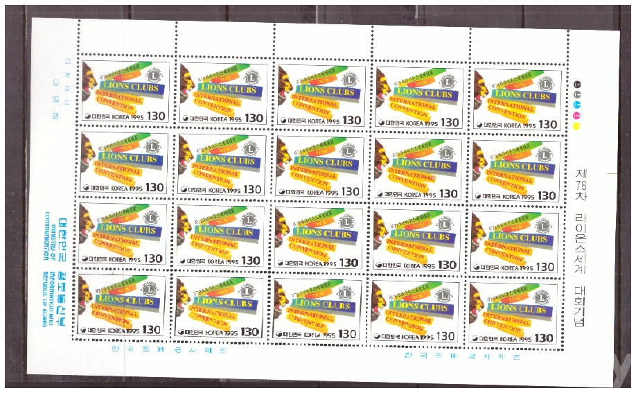 (한국전지) 1995.7.4 제78차 라이온스 세계대회 sheet of 20 MNH