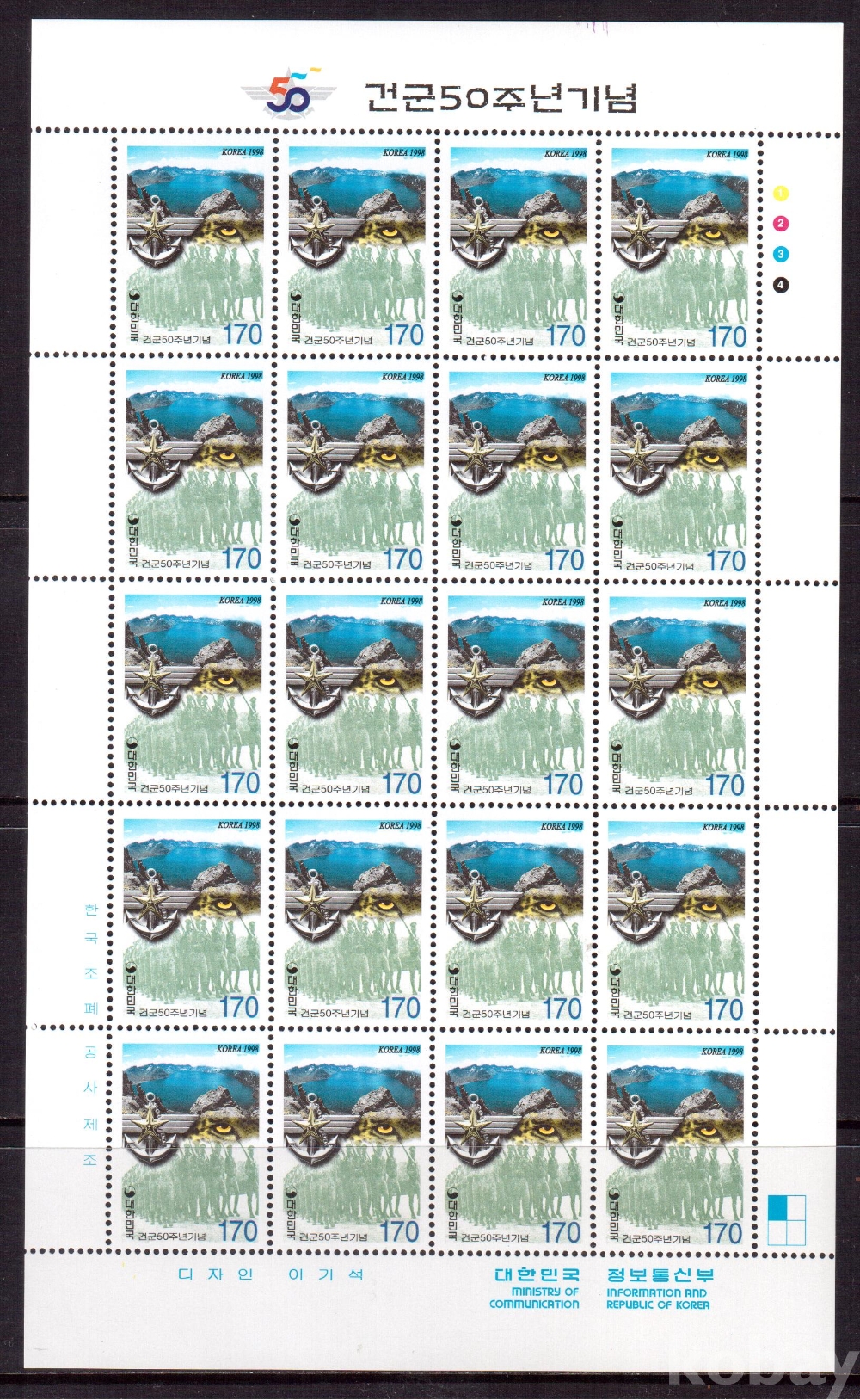 (한국전지) 1998.10.1 건군 50주년 sheet of 20 MNH