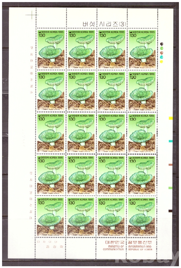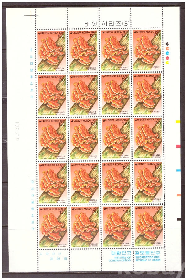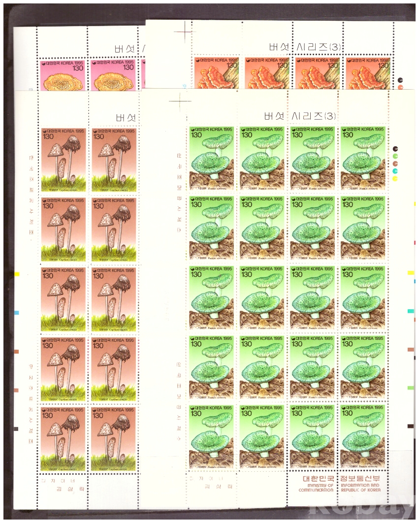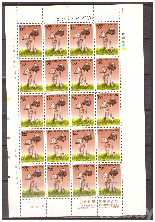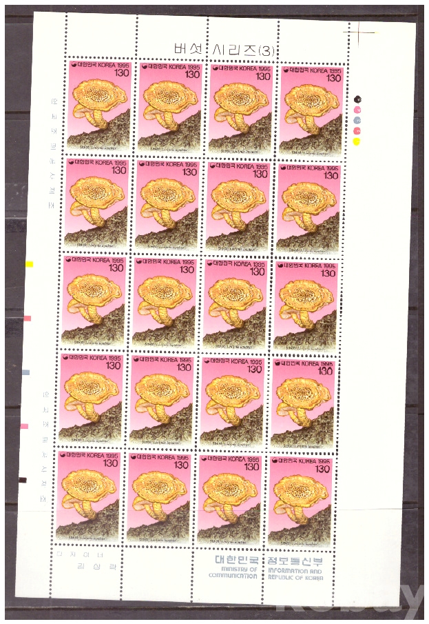 (한국전지) 1995.3.31 버섯시리즈(세번째묶음) 4완 sheet of 20 MNH
