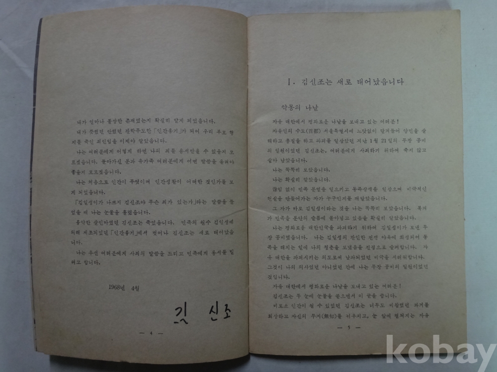 김신조 수기 - 나는 민족의 죄인 이었다 (1968년, 공보부)