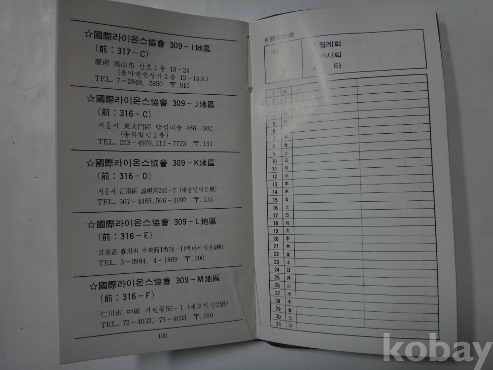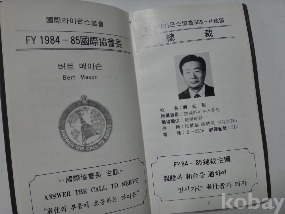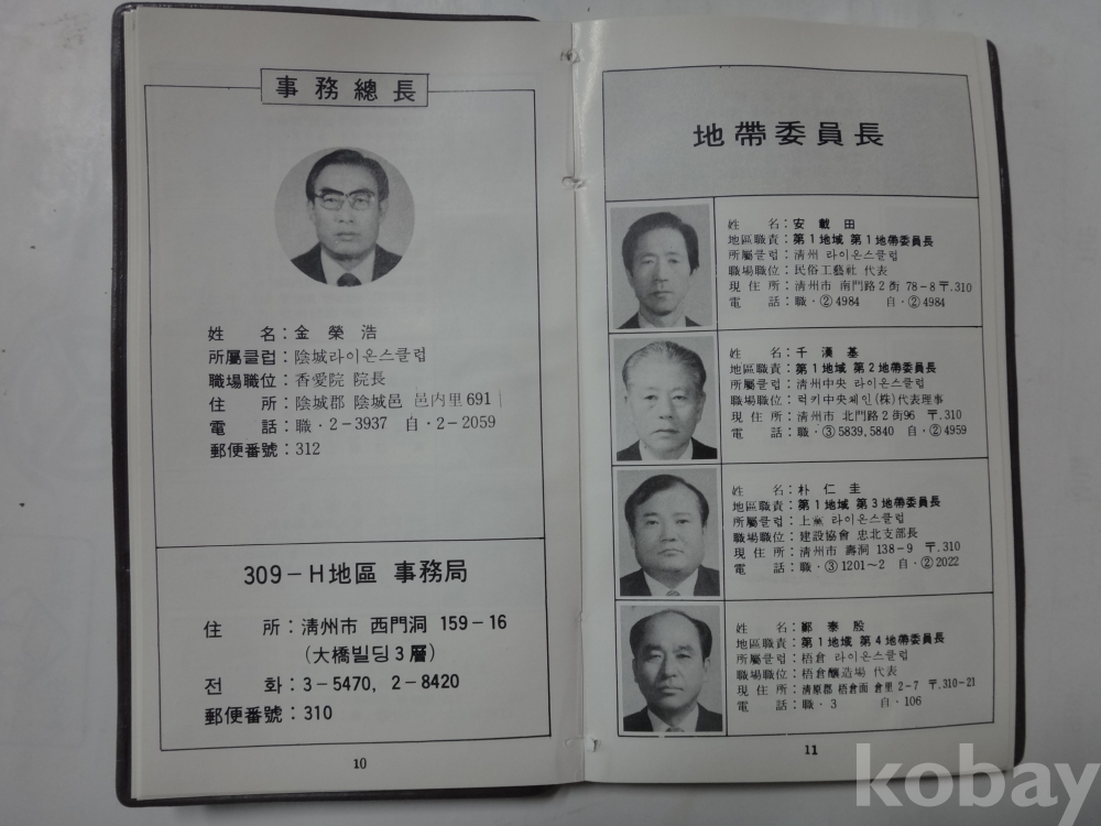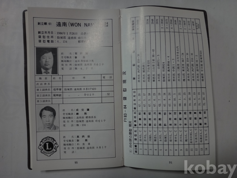 국제라이온스협회 309-H 지구 - 임원수첩 (FY84-85)