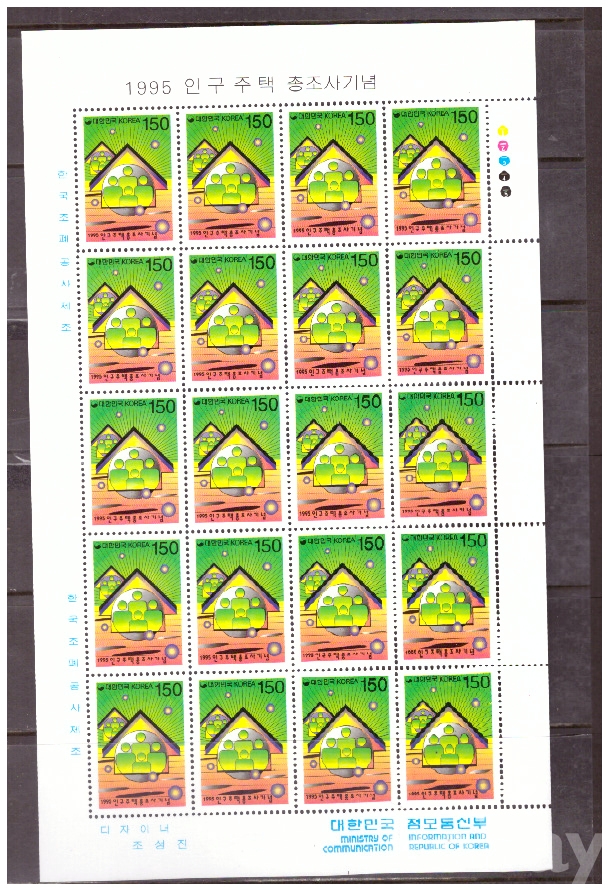 (한국전지) 1995.10.20 1995 인구 주택 총조사 sheet of 20 MNH