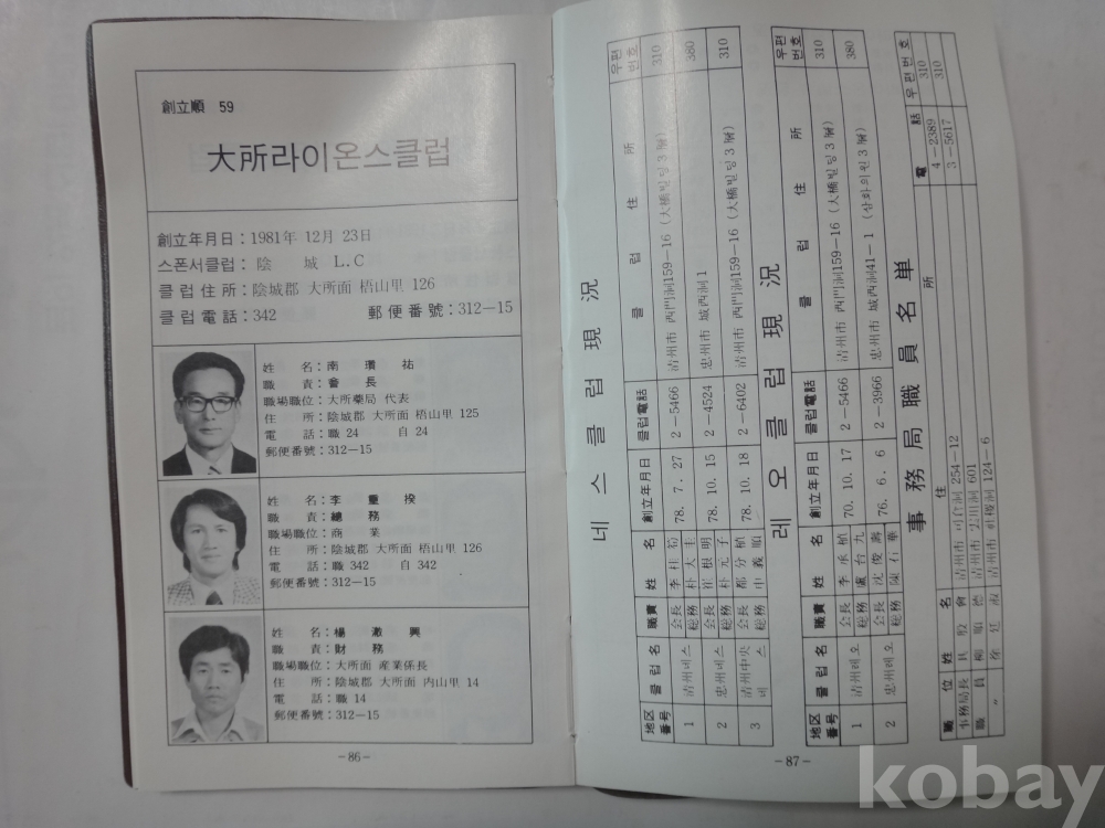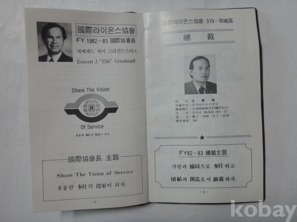 국제라이온스협회 319-B 지구 - 임원수첩 (FY82-83)