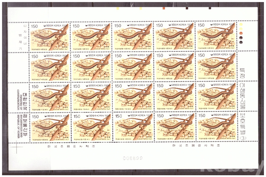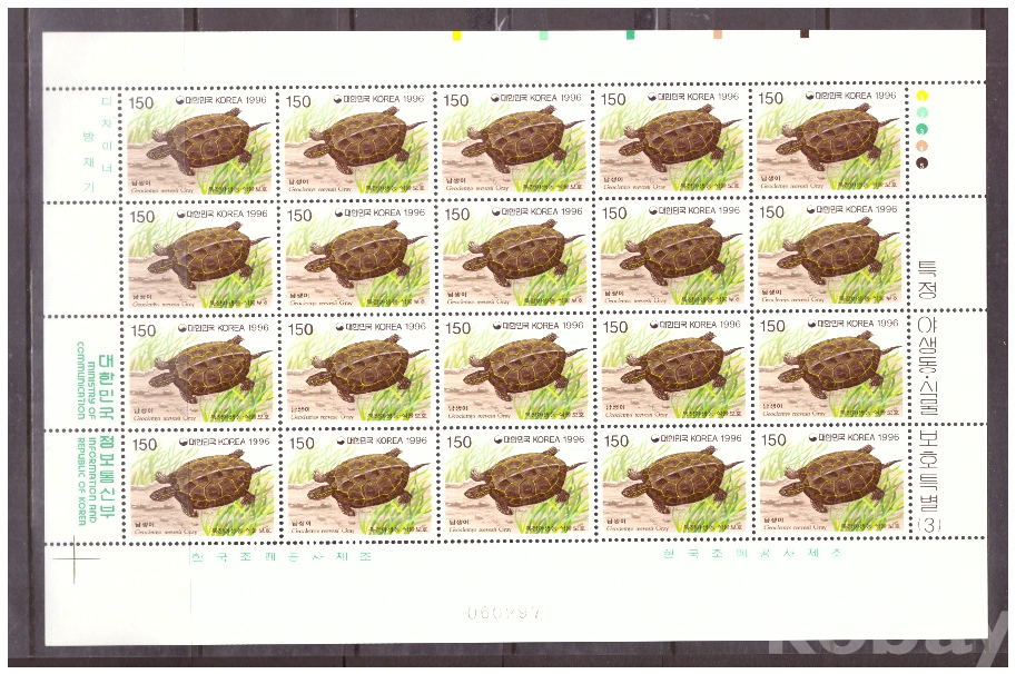 (한국전지) 1996.3.5 특정 야생동.식물 보호 2완 sheet of 20 MNH