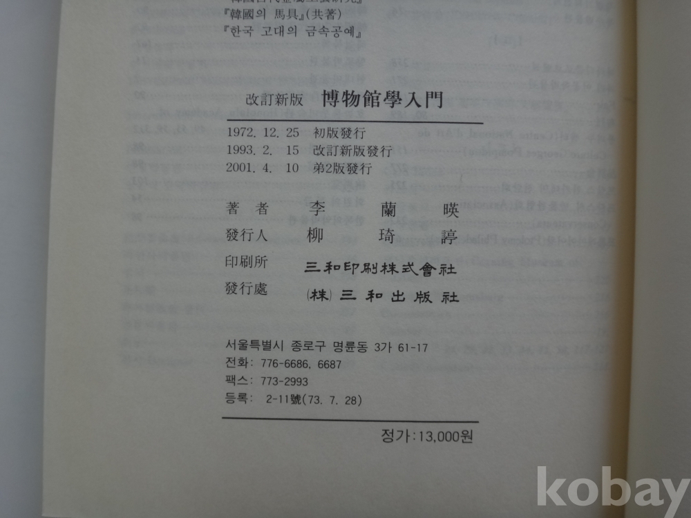 박물관학 입문 (2001년, 이난영 저, 삼화출판사)