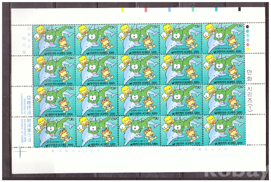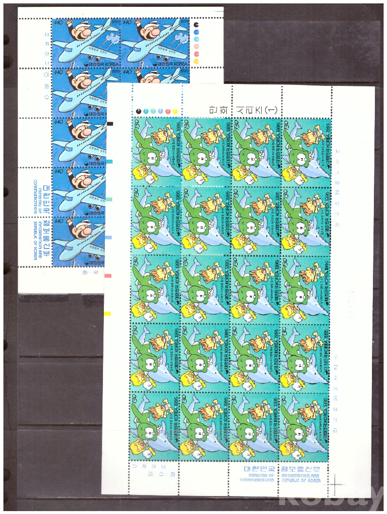 (한국전지) 1995.5.4 만화사라즈(첫번째묵음) 2완 sheet of 10 and sheet of 20 MNH