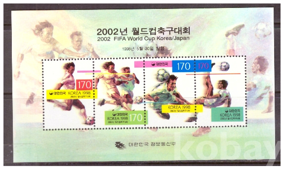 (한국시트) 1998.5.30 2002년 월드컵 축구대회 sheet of 4 MNH