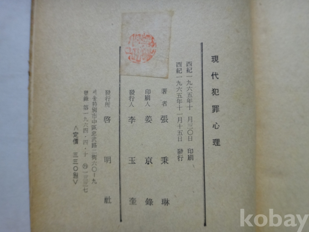 현대 범죄 심리 (1965년, 장병림 저, 계명사)