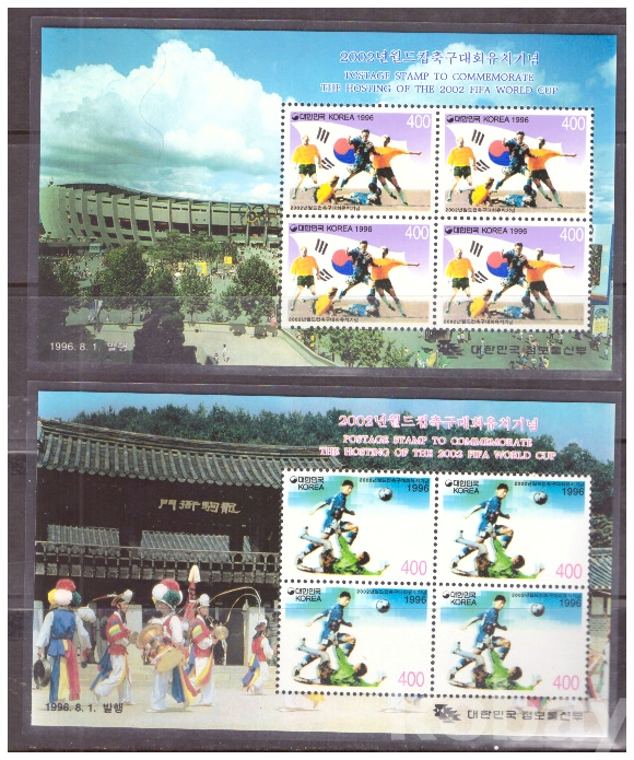 (한국전지) 1996.8.1 2002년 월드컵축구대회 유치 2완 sheet of 4 MNH