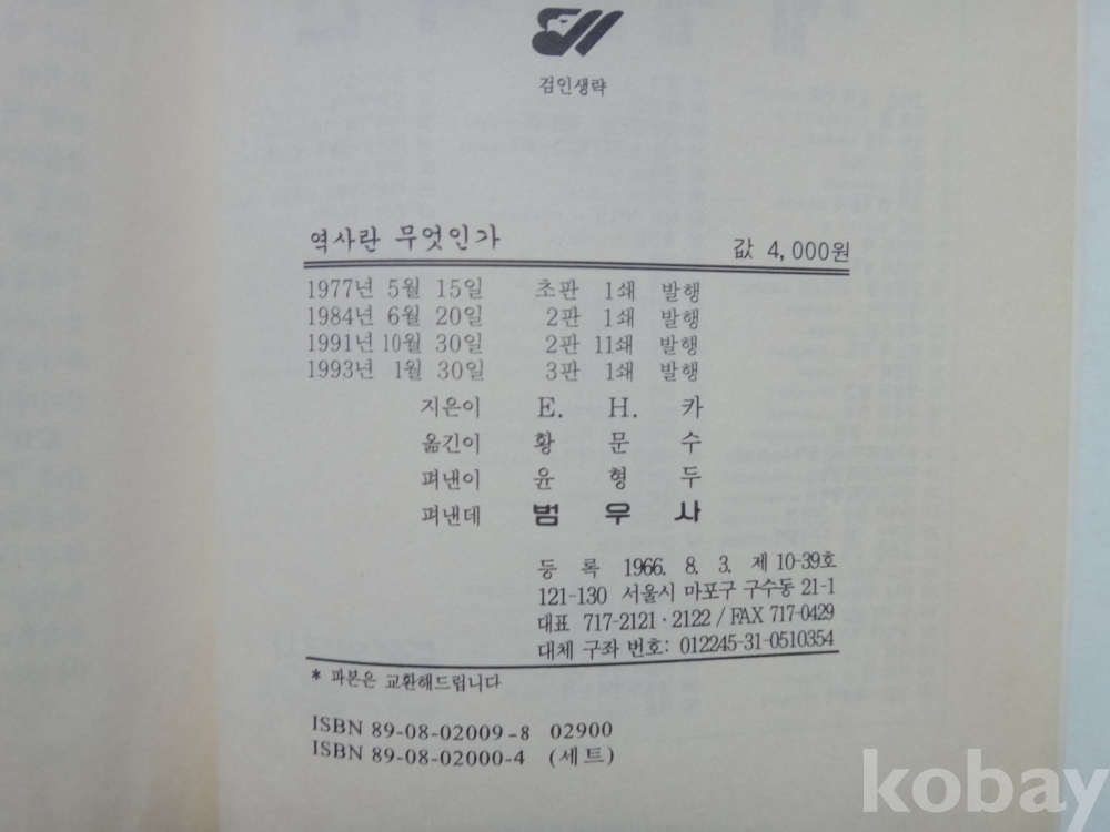 역사란 무엇인가 (1993년, E H 카 저, 황문수 역, 범우사)