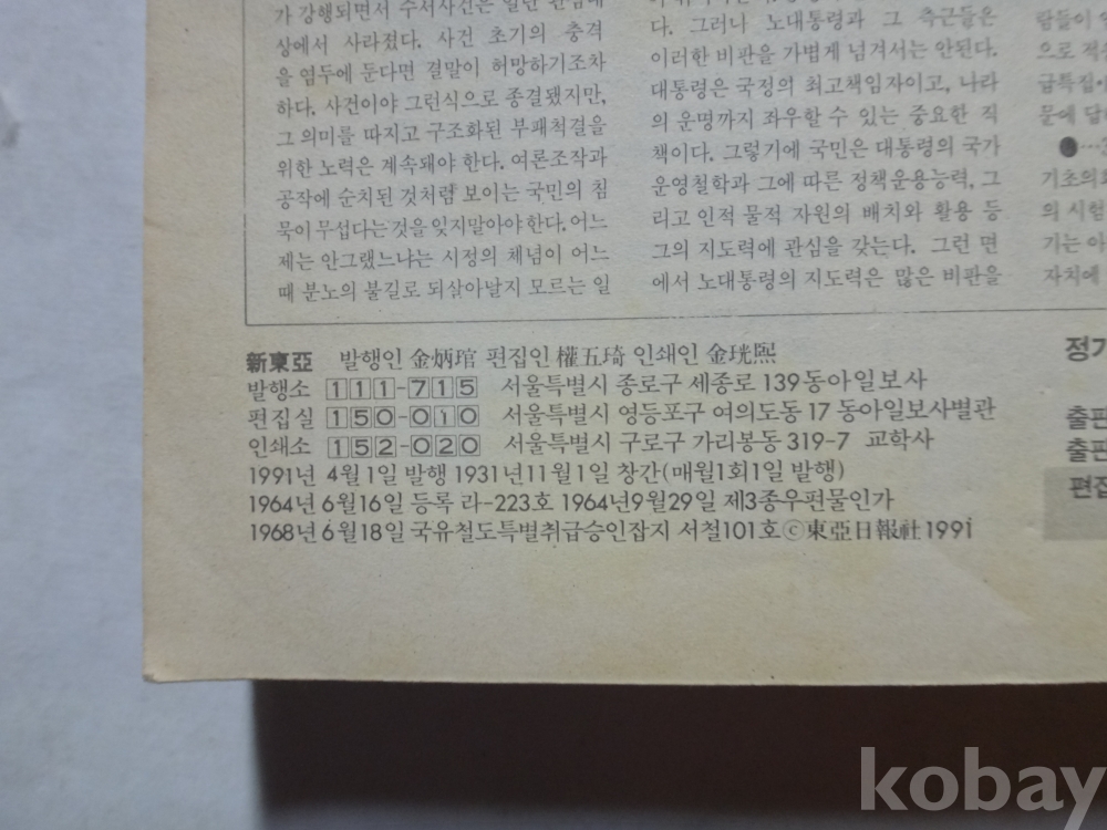 신동아 - 노대통령의 지도력, 전두환 대통령과 청와대 비서실..AIDS 약령 등 (1991년)