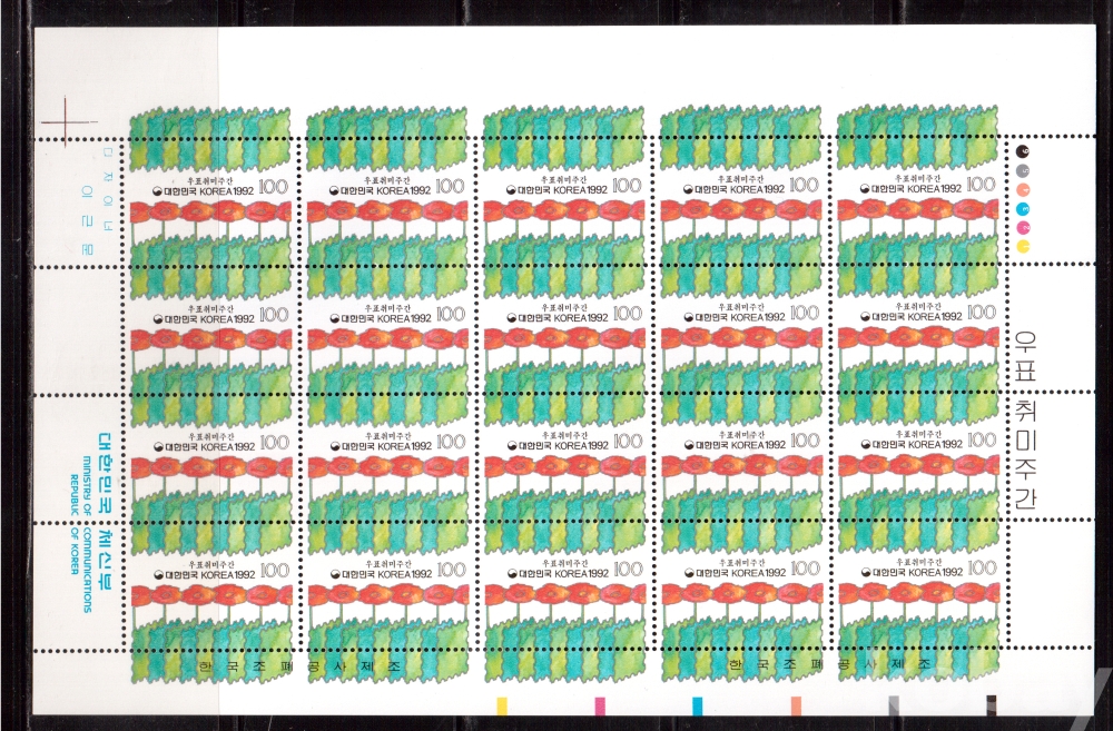 (한국전지) 1992.11.14 우표취미주간 sheet of 20 MNH