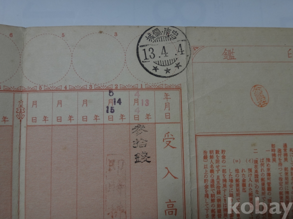 우편저금통장 - 유성면 죽동리 (소화13년)