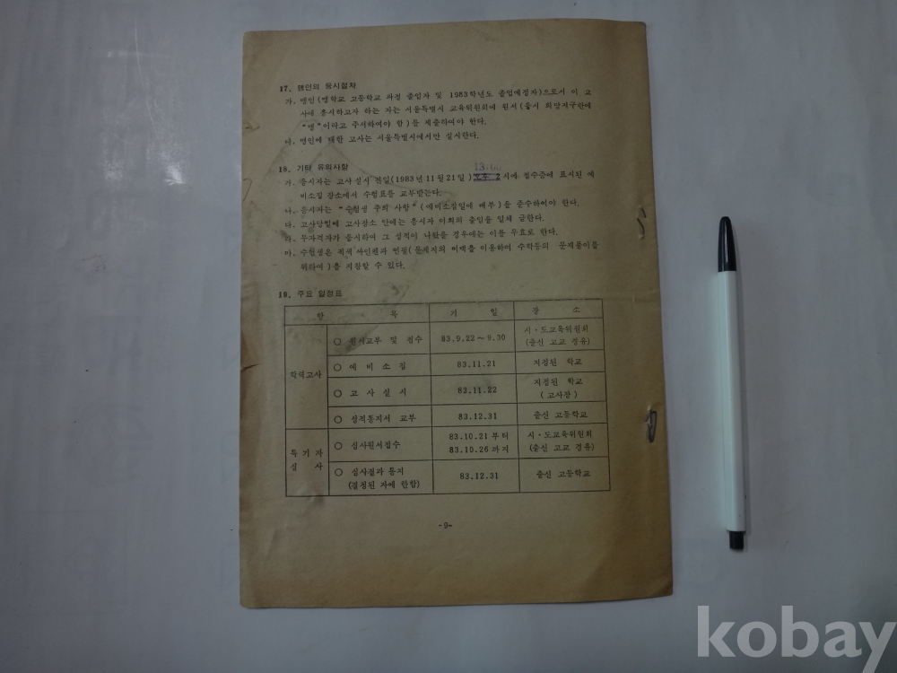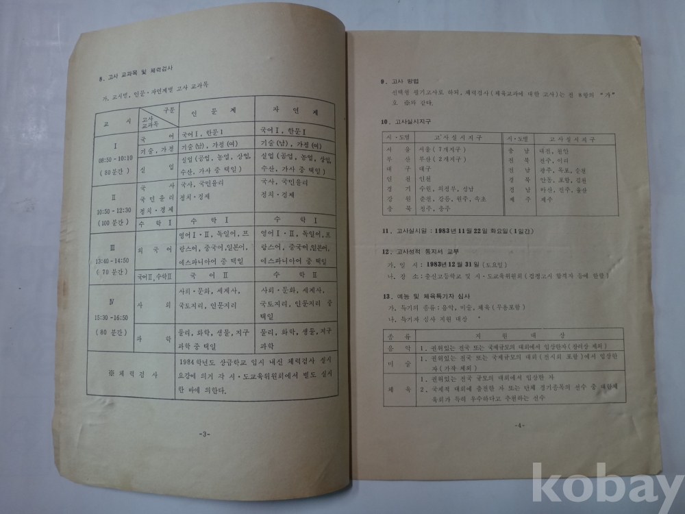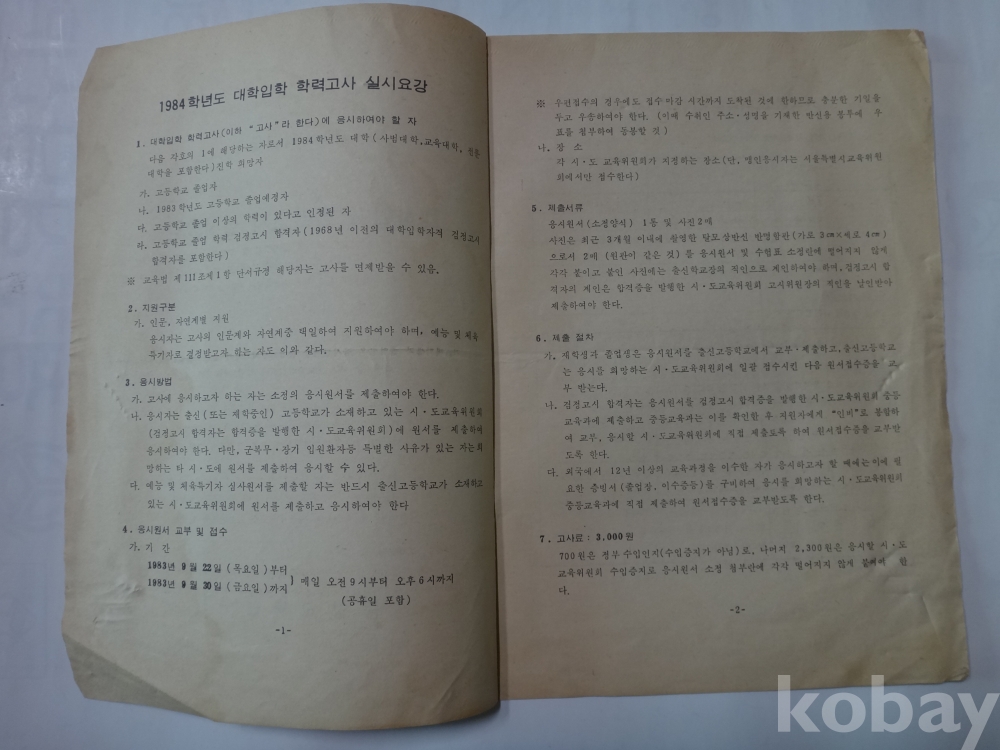 대학입시 학력고사 실시요강 (1984학년도, 중앙교육연수원)