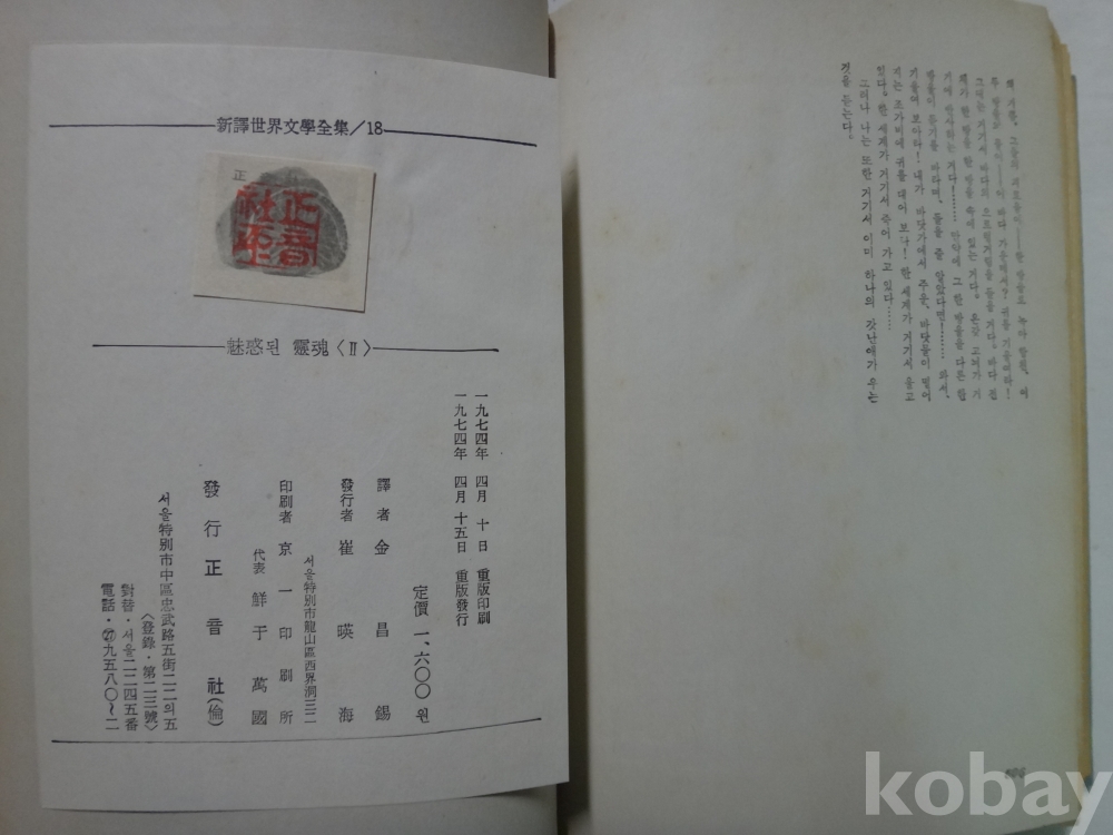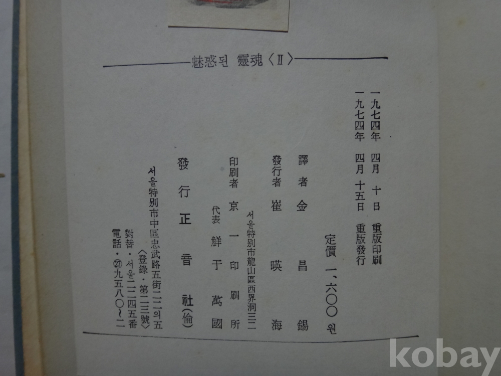 미혹된 영혼 - 로망 롤랑 저 (1974년, 김창석 역, 정음사)