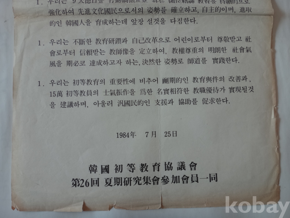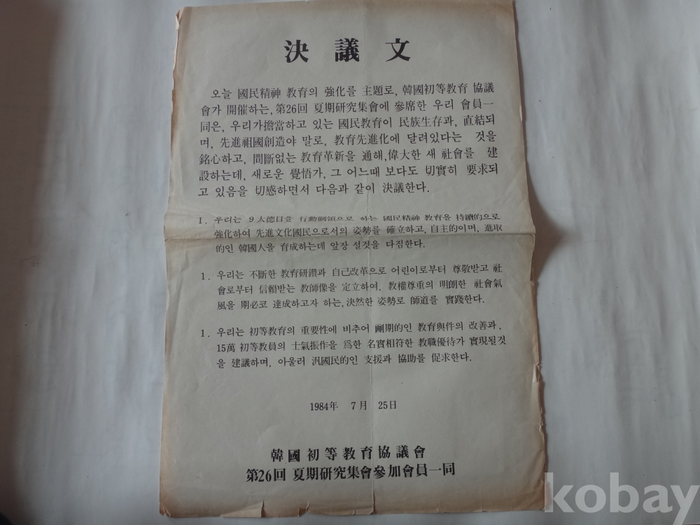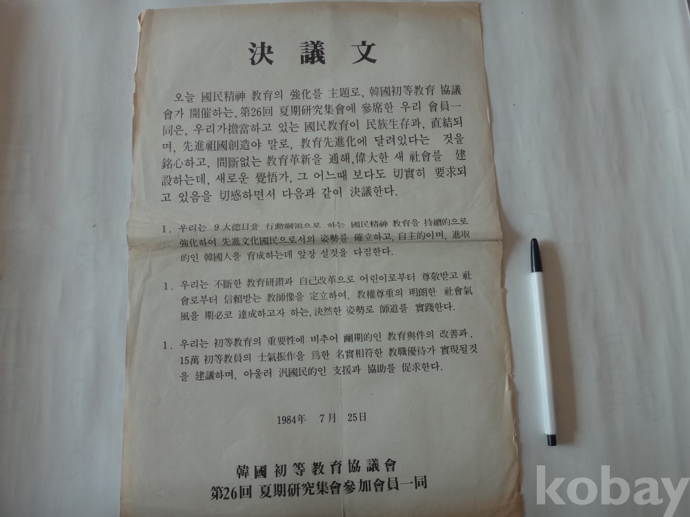 결의문 (1984년, 한국 초등교육협의회 제26회 하기연구집회 참가회원 일동)