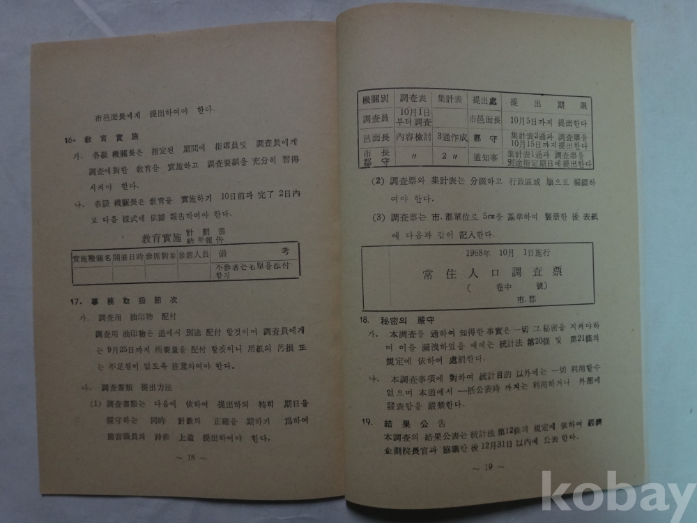 상주인구조사 요강 - 경상남도 (1968년)
