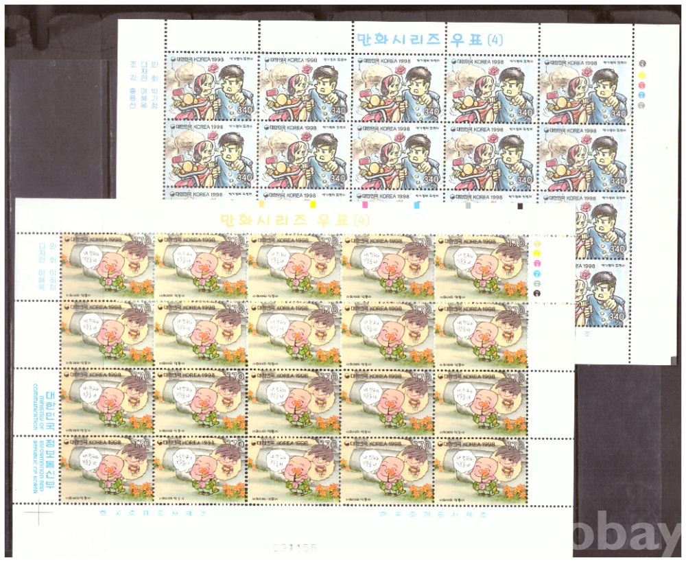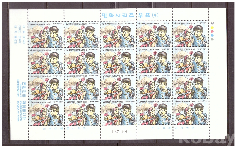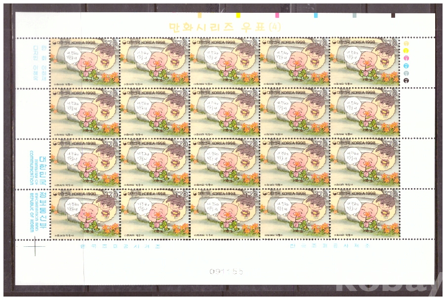 (한국전지) 1998.5.4 만화시리즈(네번째묶음) 2완 sheet of 20 MNH