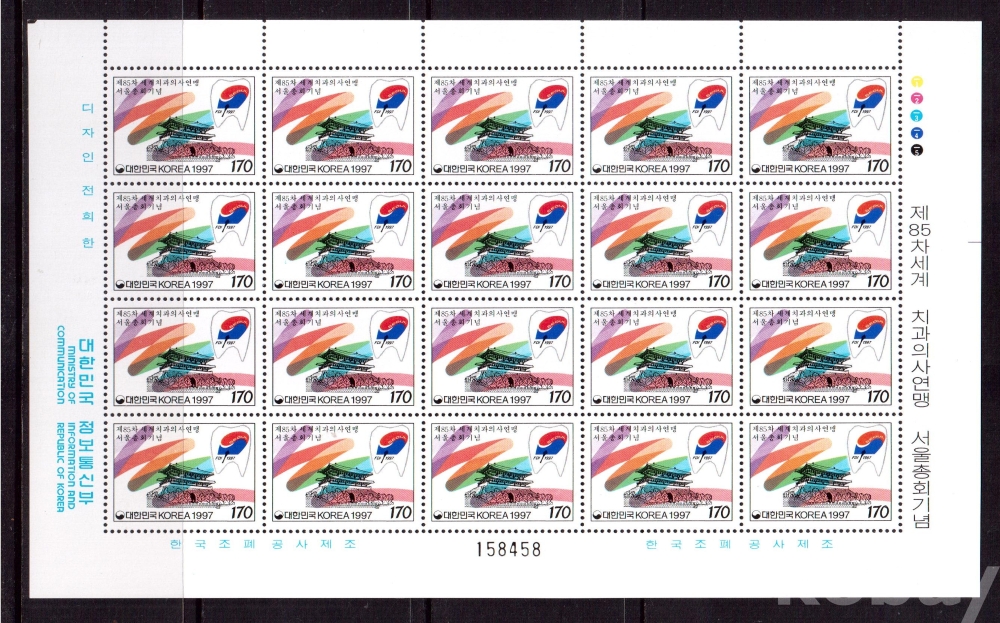(한국전지) 1997.9.5 제85차 세계 치과의사연맹 서울총회 sheet of 20 MNH