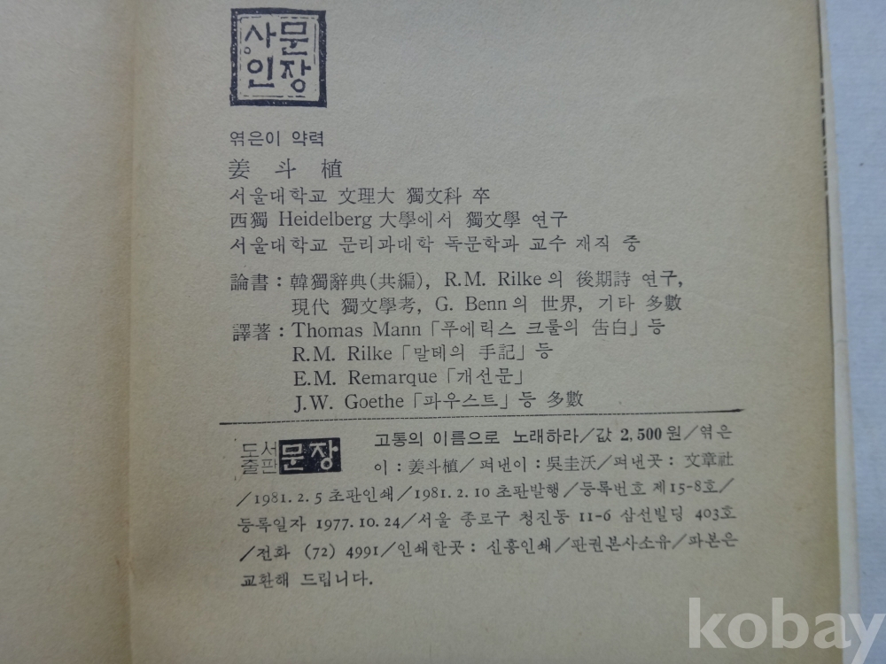 니이체 잠언록 - 고통의 이름으로 노래하라 (1981년, 도서출판 문장)