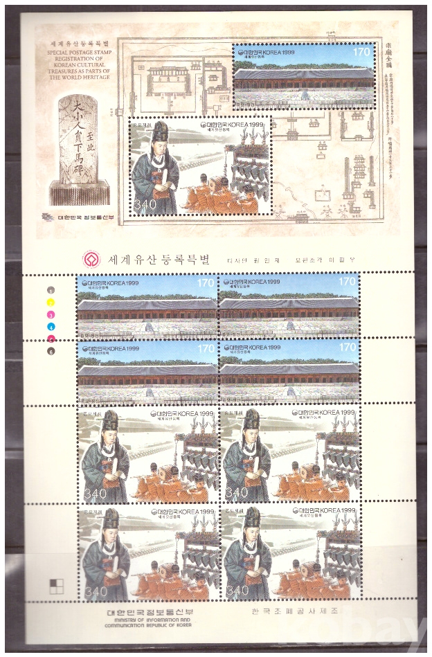 (한국전지) 1999.12.9 세계유산등록 sheet of 10 MNH