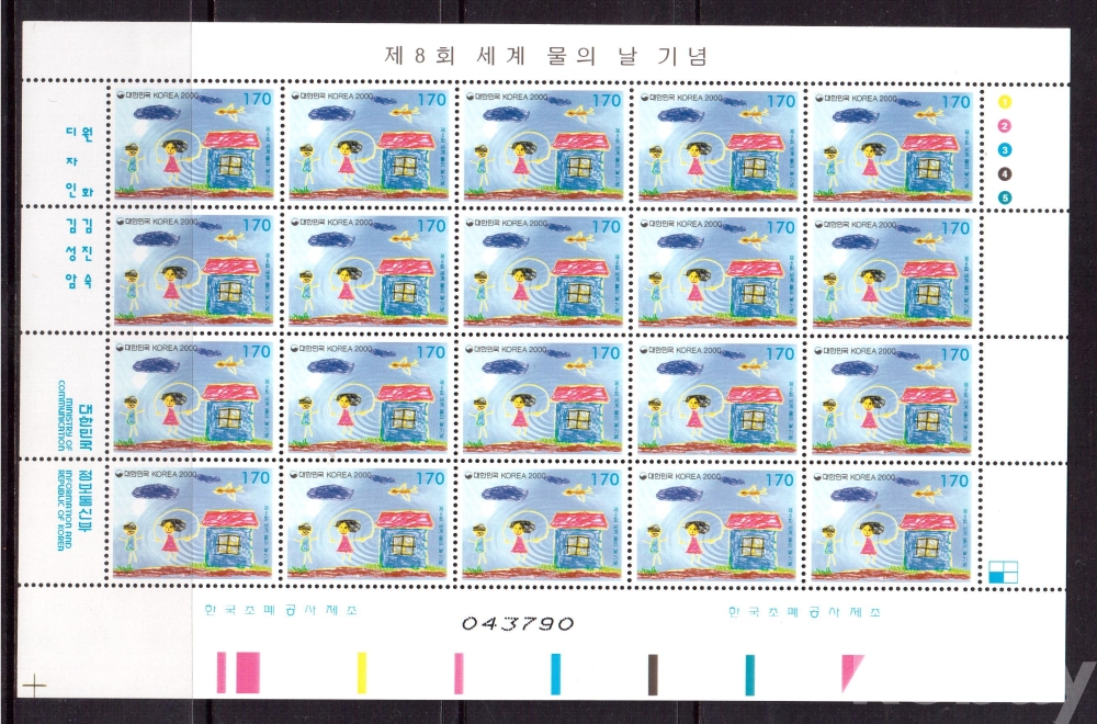 (한국전지) 2000.3.22 제8회 세계물의 날 sheet of 20 MNH
