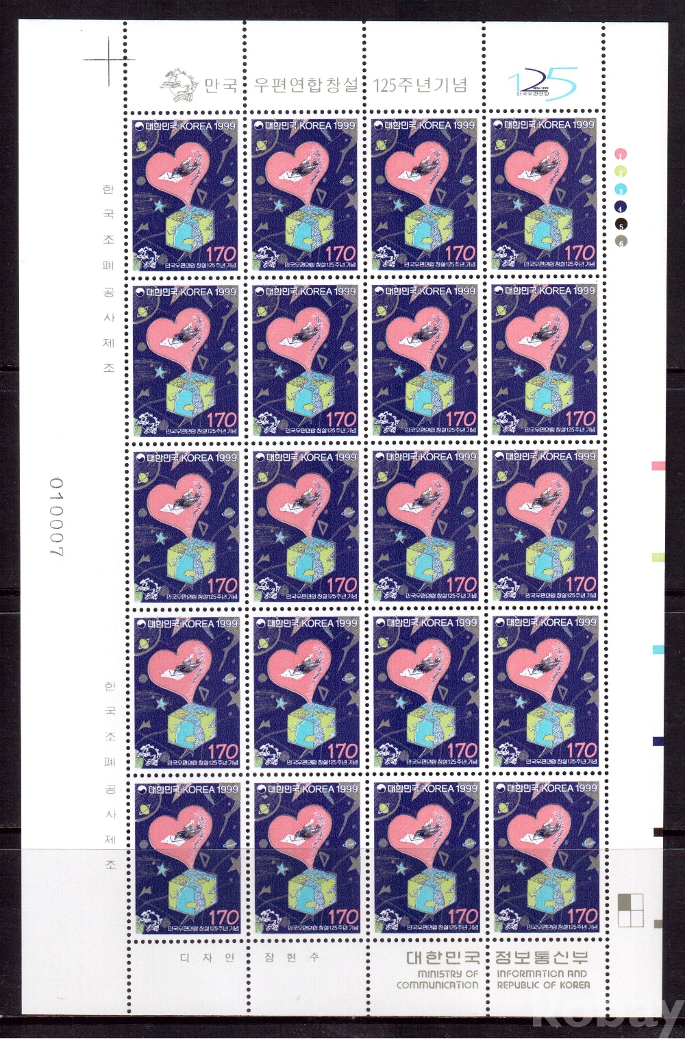 (한국전지) 1999.10.9 만국우편연합 창설 125주년 sheet of 20 MNH