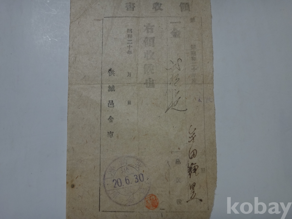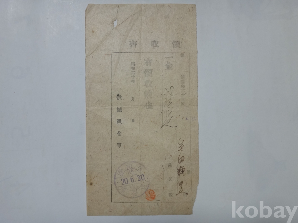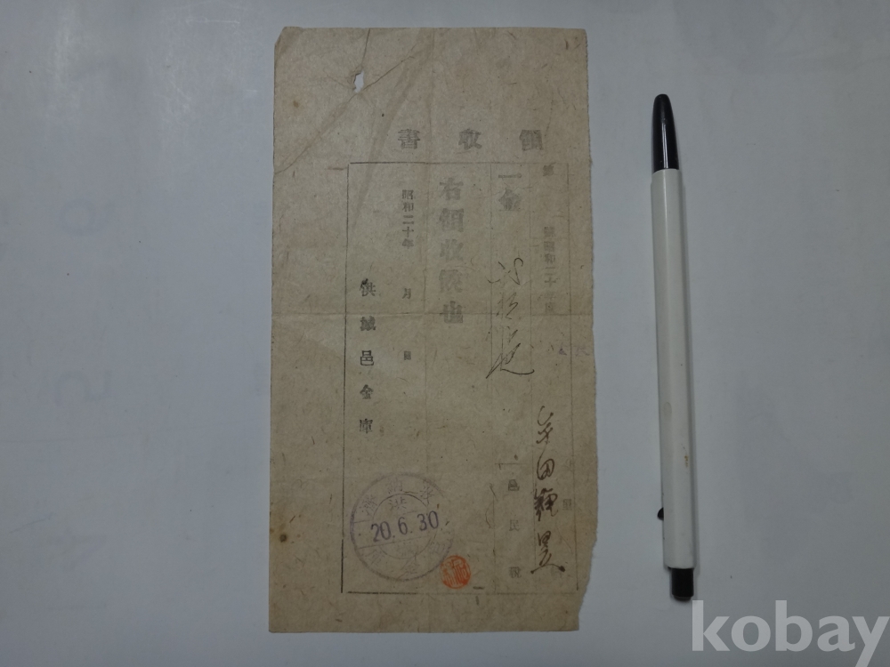 읍민세 영수증 (소화20년, 홍성군 홍성읍)