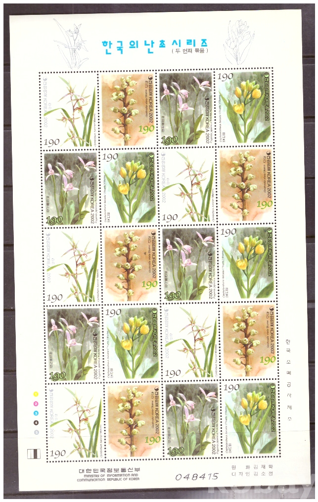 (한국전지) 2002.11.12 한국의 난초시리즈(두번째묶음) sheet of 20 MNH