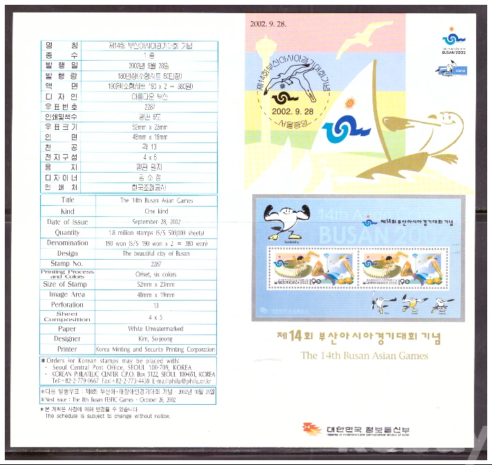 (안내카드) 2002.9.28 제14회 부산아시아경기대회 기념 (접지않음)