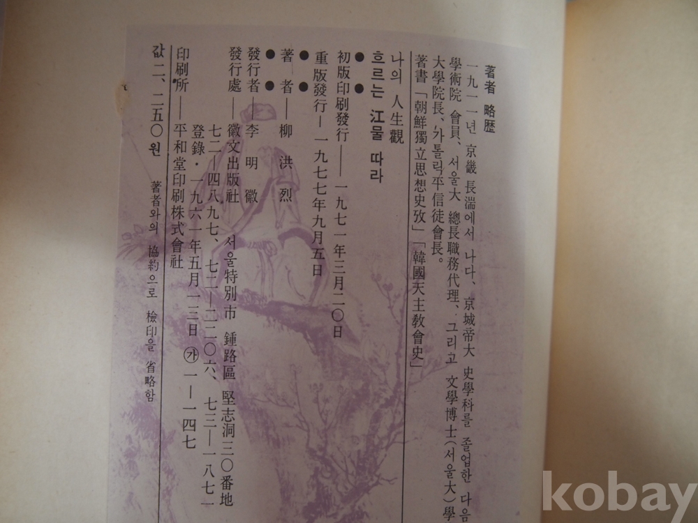 나의 인생관,,,흐르는 강물처럼 ,,,,유홍렬 지음,,,,77년