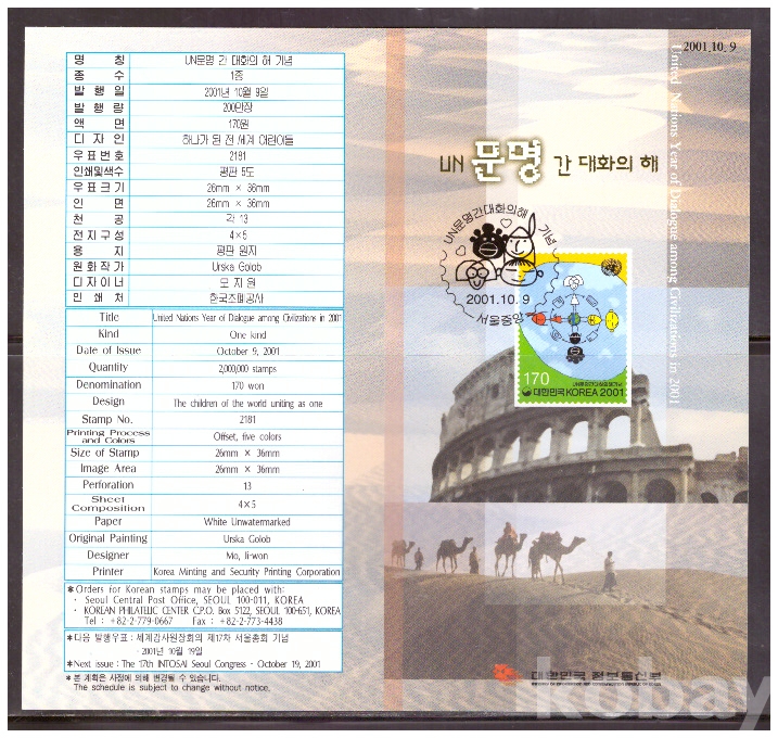 (안내카드) 2001.10.9 UN 문명간 대화의해 기념 (접지않음)