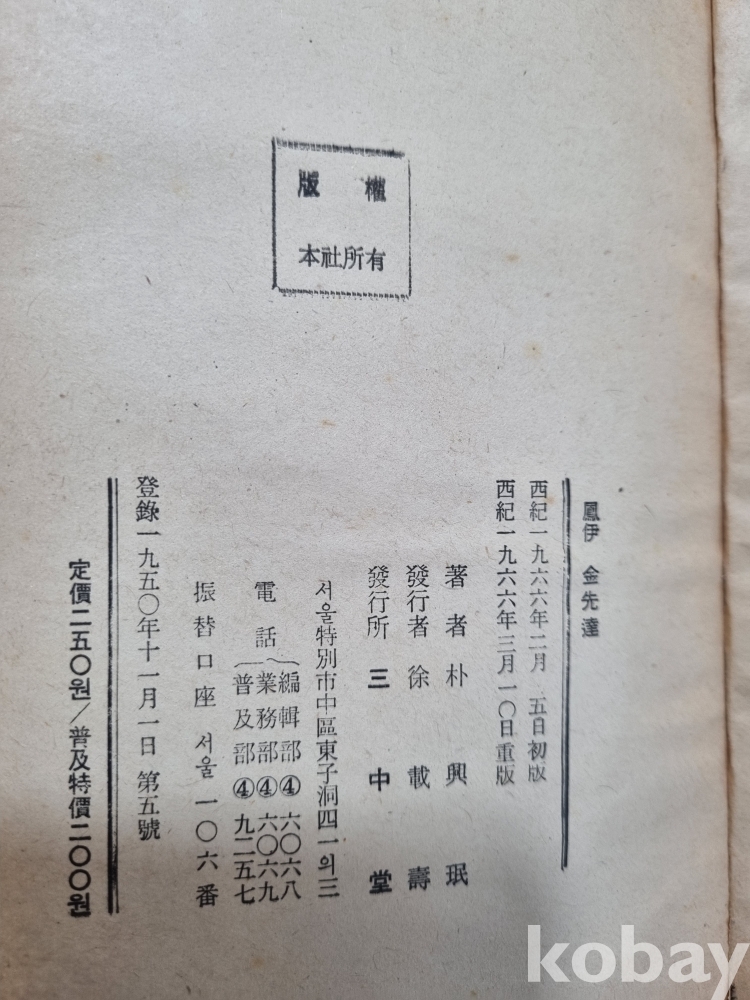 발행사항 : 서울: 三中堂, 1966