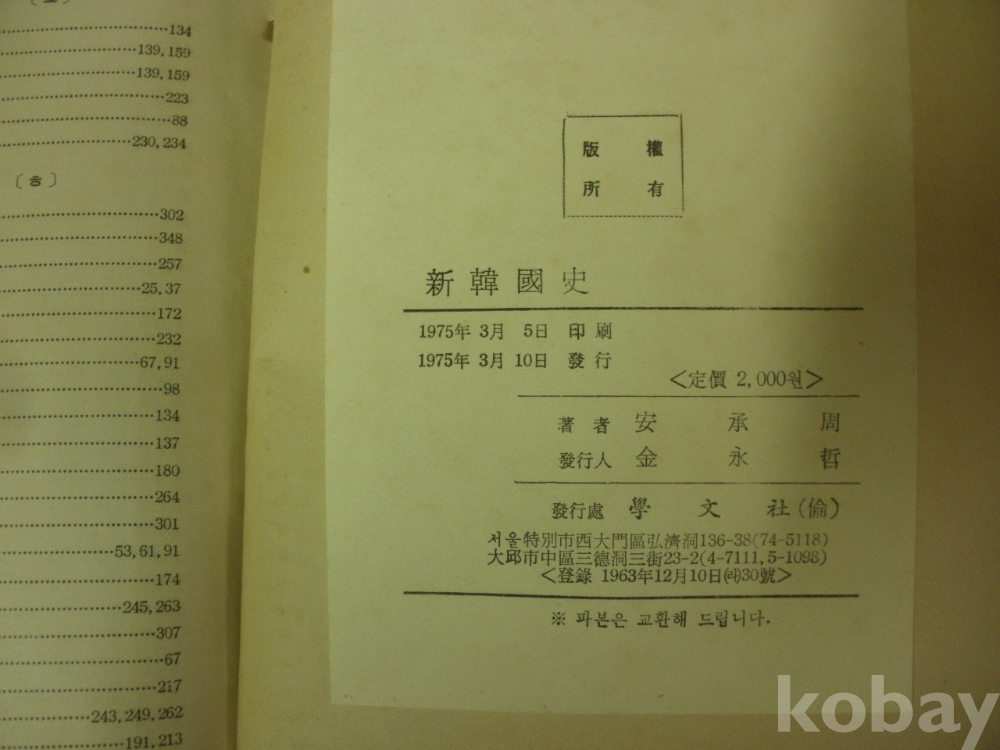 신 한국사 - 경상대학 농공학과생 (1975년, 안승주 저, 학문사)