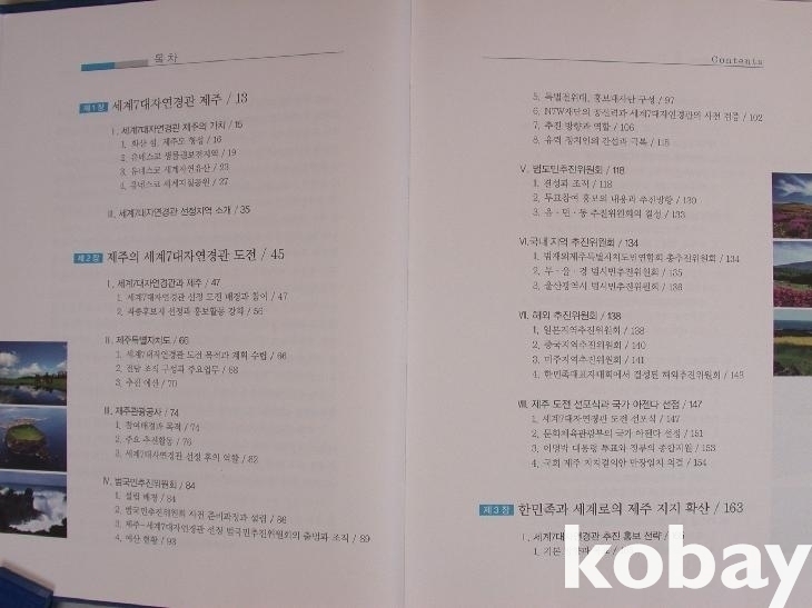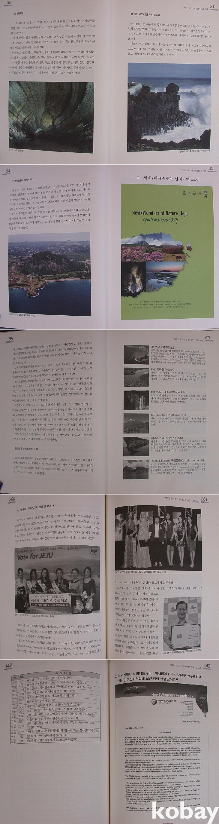 앞에 제주-세계7대자연경관 범국민추진위원장/범도민추진위원장의 <발간사>가 있다. 대한민국 인구의 1%인 제주도민이 세계7대자연경관 선정 캠페인에 헌신적으로 몰두한 일은 "관광의 미래 트렌드 변화를 파악하여 선제적으로 대응함으로써 제주 관광산업의 수준을 업그레이드하겠다는 것"이었다며 그 선정이 '세계인의 홍보 집중도를 높이는 이벤트'였다고 하였다. 이로써 얻게 된 국제인지도와 관광효과 등을 확장시키고 활성화시키는 노력을 해야 할 것이라는 말도 하였다.