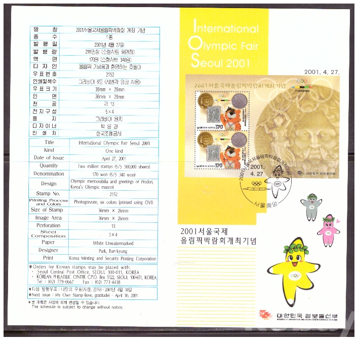 (안내카드) 2001.4.27 2001 서울국제올림픽박람회 개최기념 (접지않음)