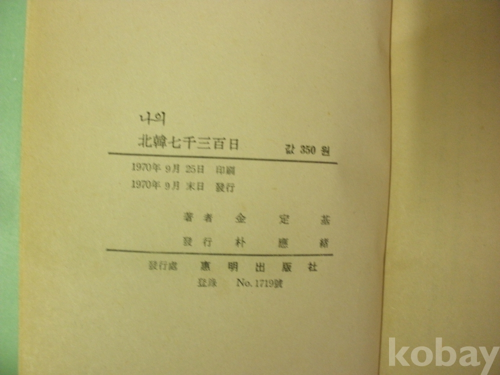 민족 수난의 실록 - 나의 북한 칠천삼백일 (최정기 저, 1970년)