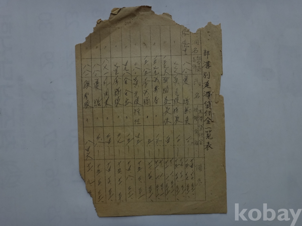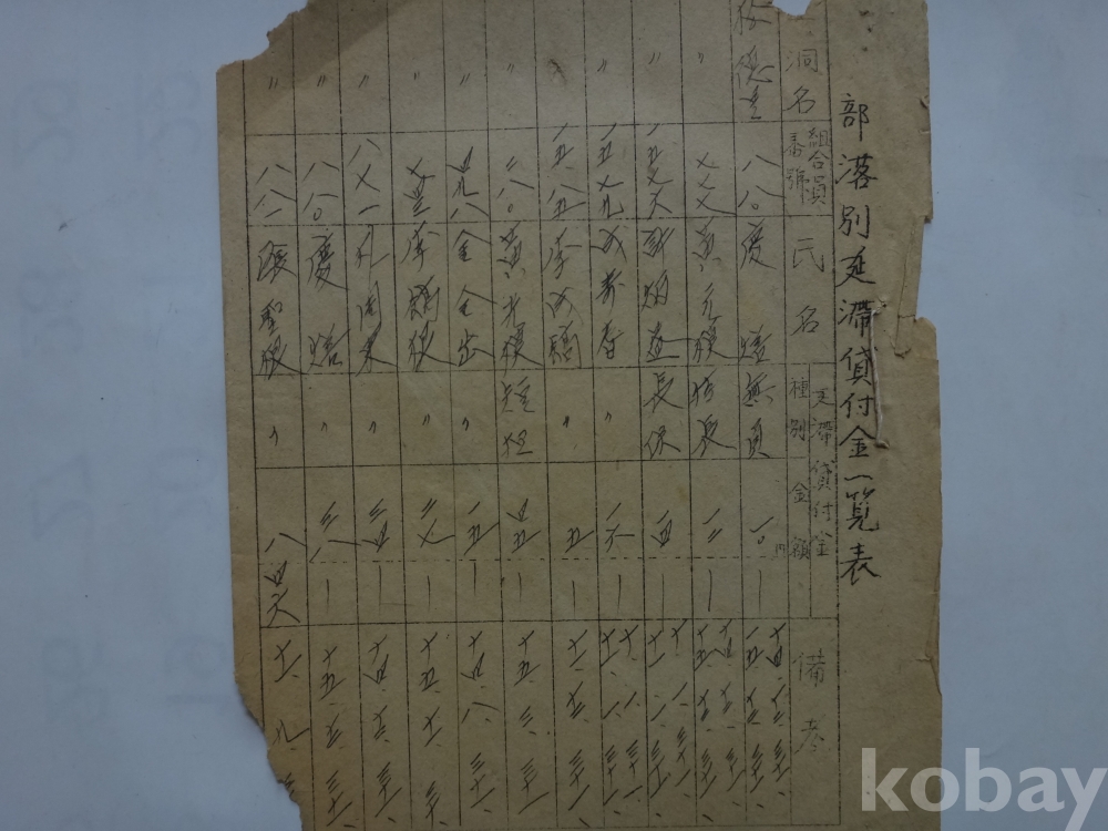 부락별 연체 대부금 일람표 - 송덕리 (일제강점기)
