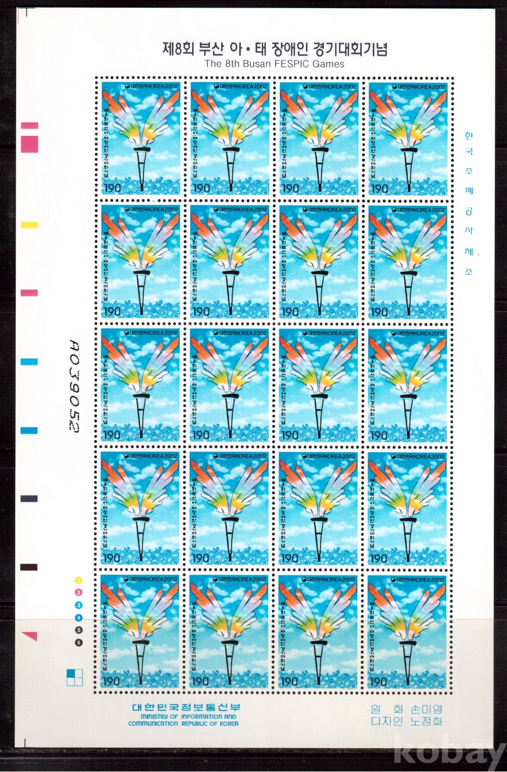 (한국전지) 2002.10.26 제8회 부산 아-태 장애인 경기대회 sheet of 20 MNH