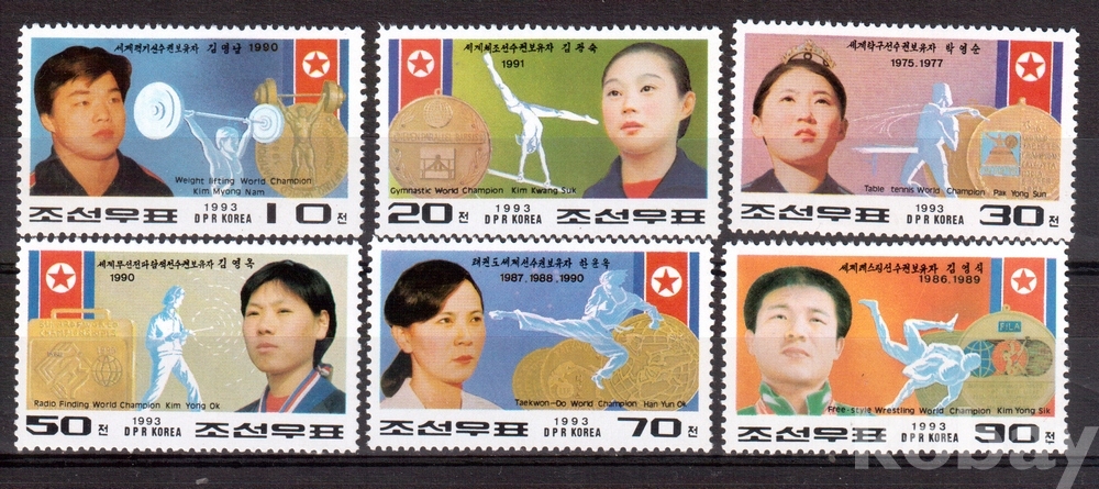 (스포츠) 북한 1993.6.15 우리나라의 세계선수권보유자들 6완 MNH