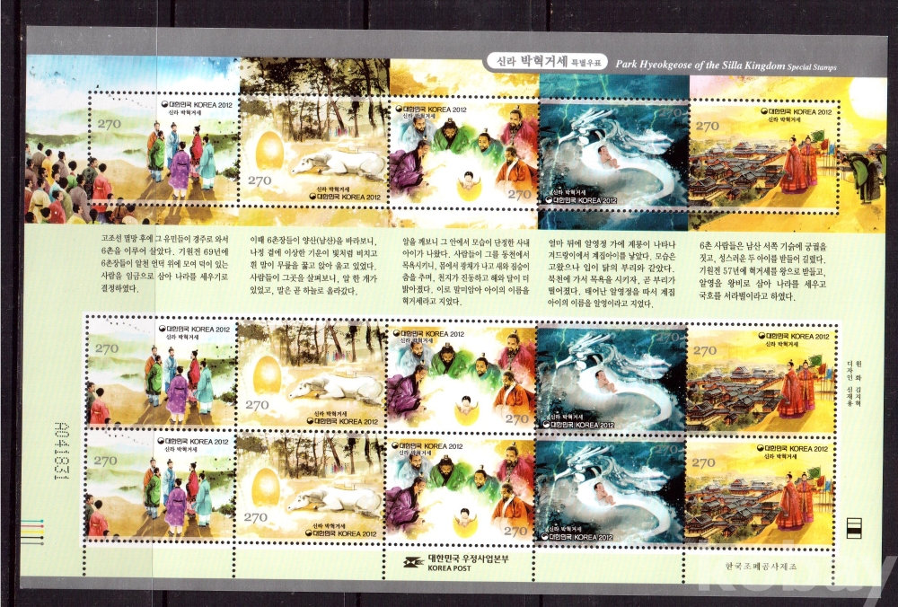 (한국전지) 2012.11.21 신라 박혁거세 sheet of 15 MNH