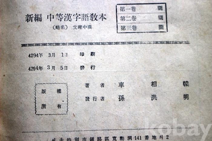 (교과서) 신편 중등한자어교본 제3권 - 1961년 / 서울 문리사 발행 ...