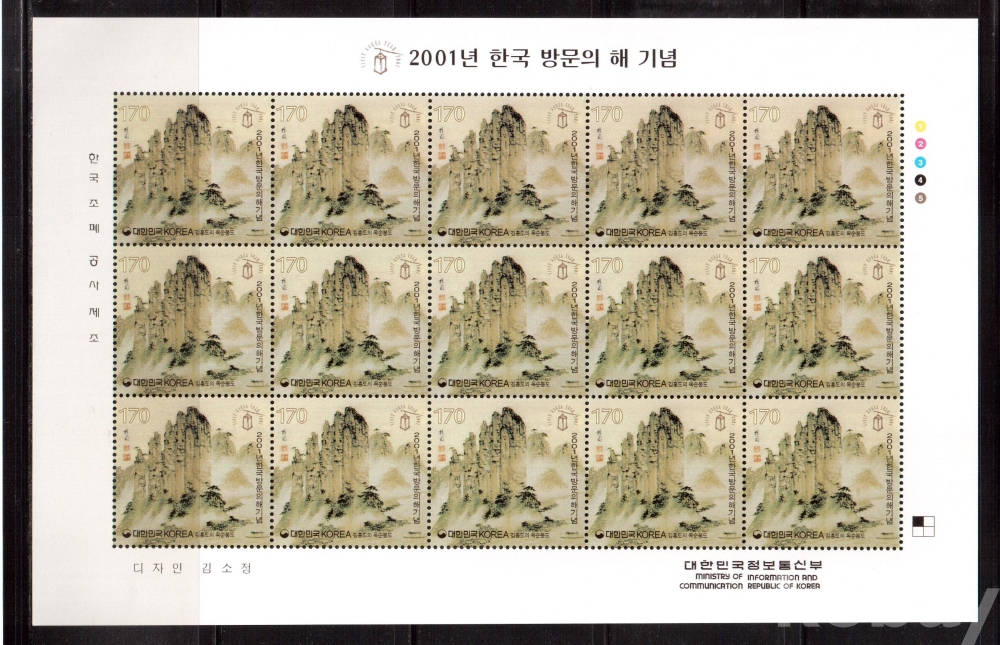 (한국전지) 2001.1.10 2001년 한국 방문의 해 sheet of 15 MNH