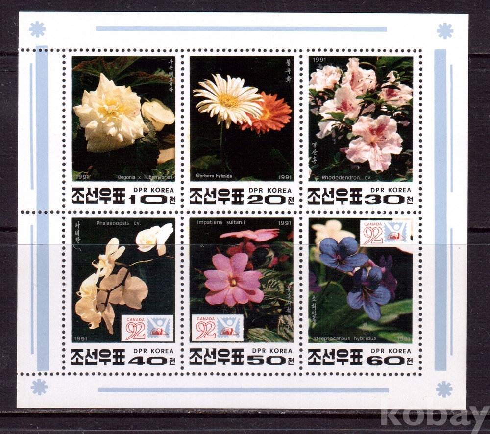 (식물) 북한 1991.10.16 꽃 sheetlet of 6 MNH
